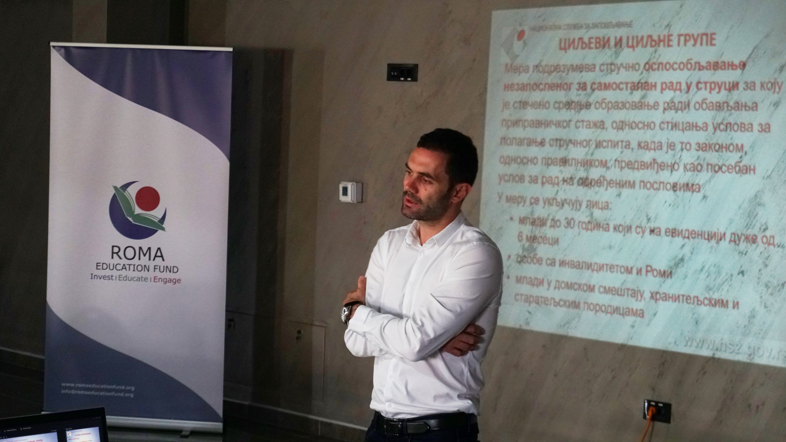 Svoja iskustva i znanja sa mladim Romkinjama i Romima podelili su Darko Marjanović, predstavnik Nacionalne službe za zapošljavanje, Marko Vučetić, predstavnik kompanije Infostud, Ivana Đurić iz škole stranih jezika „Eurotranslate” i Ivan Janković, predstavnik kompanije IKEA.